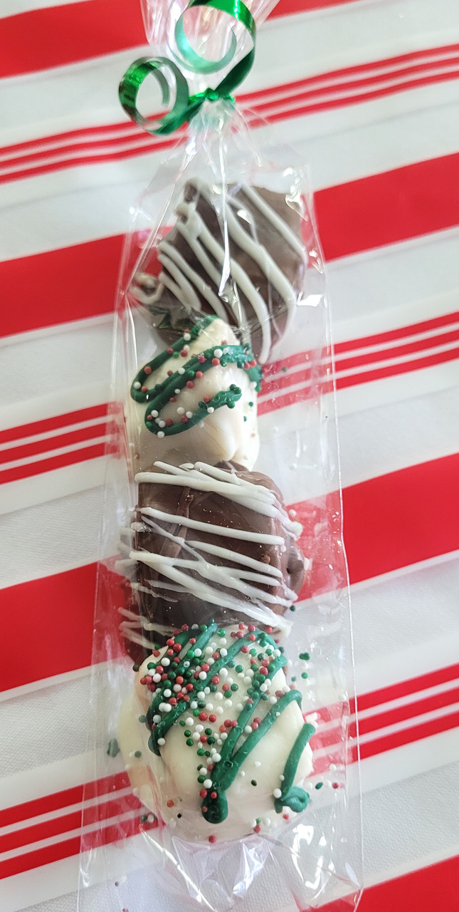 Our famous artisanal biscotti in bite size pieces totally enrobed in chocolate.