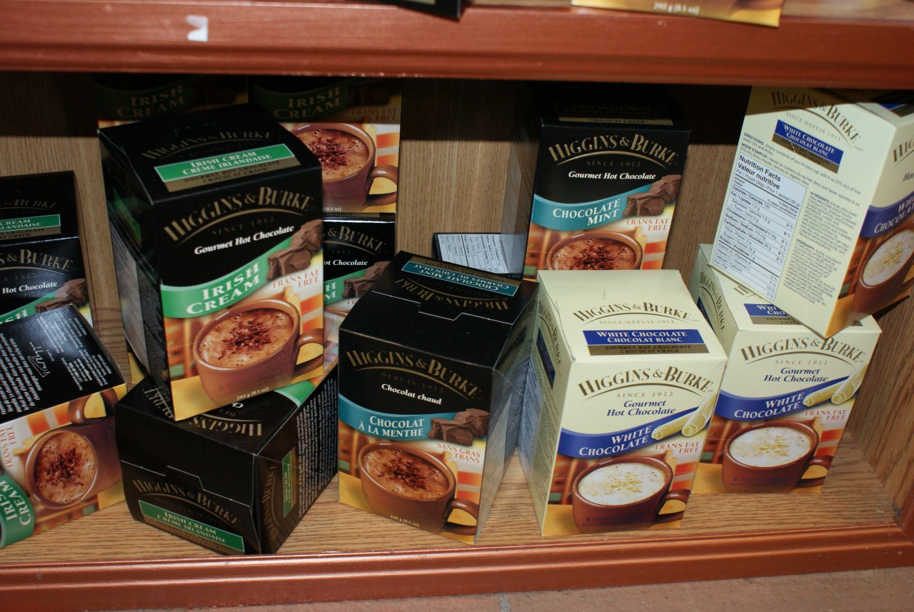 Higgins & Burke hot chocolate. Purchases can be made by full cases of twelve.